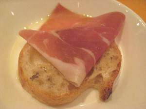 パルマ産生ハムのクロスティーニ。