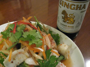 生海老の香味野菜添えは尻尾の色が冴えなかったが