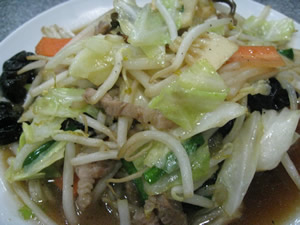 肉野菜炒めとワンタンを頼んでみた。