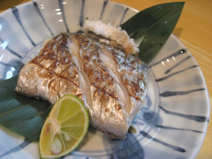酢橘を添えた太刀魚塩焼き