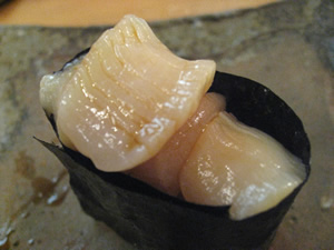 あぶった帆立貝柱を寿司海苔で巻いた