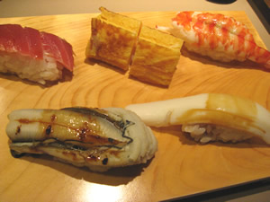 これは、煮いか・穴子・づけ・玉子・車海老の順に。