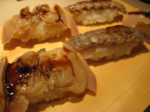 沢煮をあぶり、煮ツメを一刷毛引いた穴子が白眉。