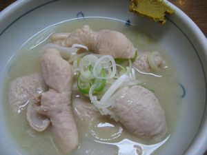 塩味仕立てのもつ煮込み
