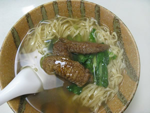 歯ざわりで豚脚麺、ノビにくさで伊府麺だ。