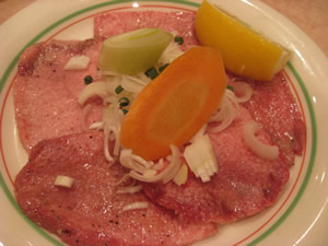 薄くスライスされた上タン塩