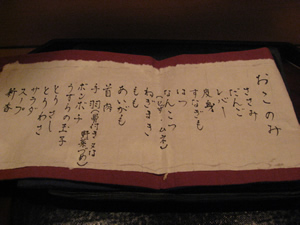 まずは「お好み」の品書きから