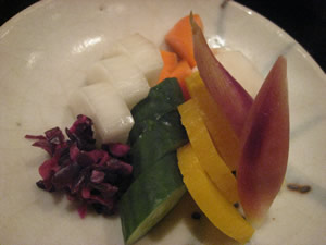 新香の盛合わせをお願いした。
