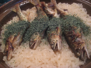 ここにも若鮎が入って一同の頬が一段とゆるむ。