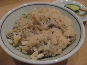 店主自らが炊き込みごはんを茶碗によそってくれる。