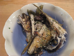 ほぐしたあとの鮎の頭と中骨もちゃんといただく。