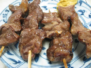大ぶりな串のタンとハツ