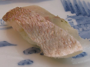 入り口近くの水槽には真鯛・白鯛・そい・かさごが