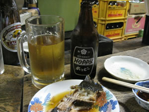 酒をホッピーに切り替え、かれいの煮付けとおでん。