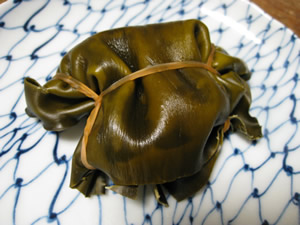 輪ゴムでしばられて上海蟹みたいな昆布〆
