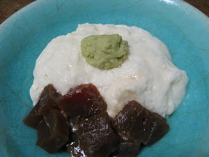 山かけも粘りの強い大和芋のおかげで箸でつまめるほど。
