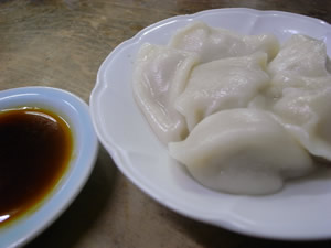 辣油入り醤油で食べる水餃子