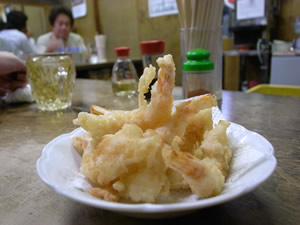 つまみの第二ラウンドは一口海老天。