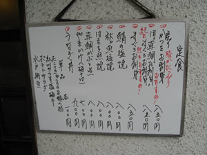 その日の定食メニューはかくの如し。