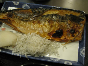 こちらもけっこうな大きさの鯖塩焼き