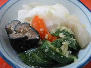 本当に雪降り積もる新香盛合わせ