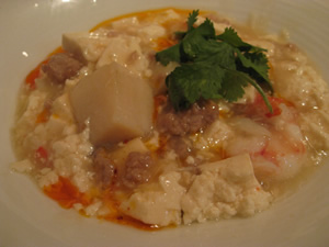 帆立と海老入りの麻婆豆腐は白仕立て
