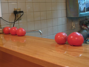 カウンターに落ち着くと、なぜか目の前にトマトが並んでいる。