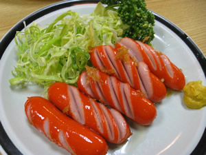 まぐろ刺身・とんかつ(上)・ウインナー炒め・