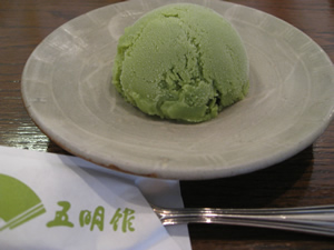 食事の締めくくりは当然、うす茶のアイスクリーム。