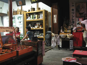 縁台を配した角打ちで一休み