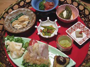 大和鶏の冷製を中心に据えた盛合わせ