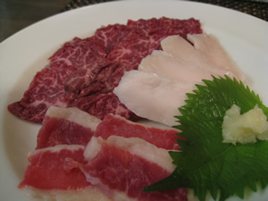 馬刺しの盛合わせがよくもこんな場所(失礼!)で