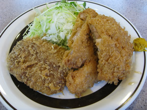 注文はビール、メンチカツ&チキンカツ、ほうれん草ソテー。