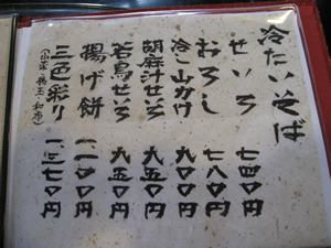 品書きをパラリとめくる
