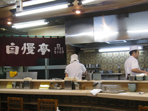 カウンターも厨房も清潔感が自慢の「自慢亭」であった。