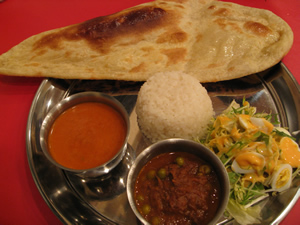 キーマカレーとバターチキンを盛込んだプレートを
