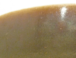外側だけに鉄釉を塗り、茶褐色に焼き上げています。