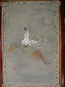今回の依頼品 シルク刺繍画「仙女乗鳳」
