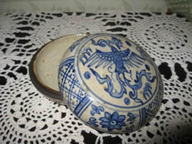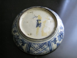 ○鑑定結果 面白い焼き物ですね。 17世紀後半、オランダのデルフト窯という窯で、 近代に入り、景徳鎮や伊万里焼を模倣したデルフト窯製の陶磁器は それを見た、贋作商はデルフト窯が 依頼の作品は、そのような流れの中で焼かれた中でも 絵付けは稚拙ですし、 でも、嫌味のない可愛い焼き物ですので、 ○結論 真似ようとした漢字は「犬猿」だと思います。 |
