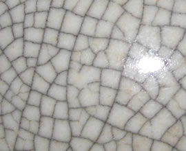 灰色に焼き上がった青磁の一面にひび割れが生じています。