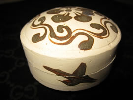 この耀州窯白黒文合子は北京で手に入れたのですが、