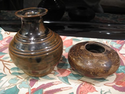 二つの焼き物は良く似た焦げ茶色ですが、