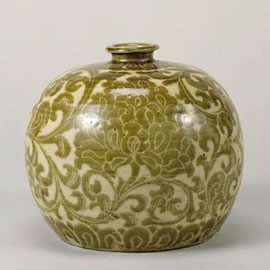 中国北宋時代に河北省の定窯焼かれた「銹花唐草文瓶」です。