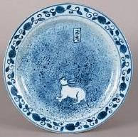 古染付けの中でも人気が高い吹き墨の兎の小皿